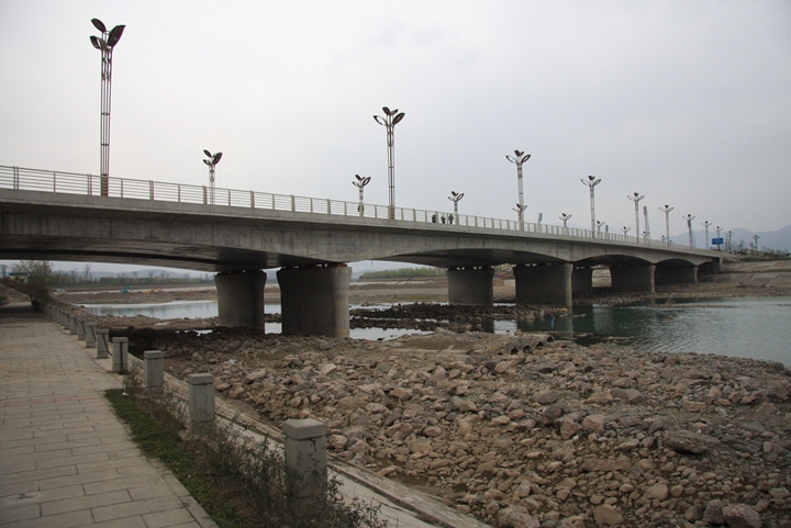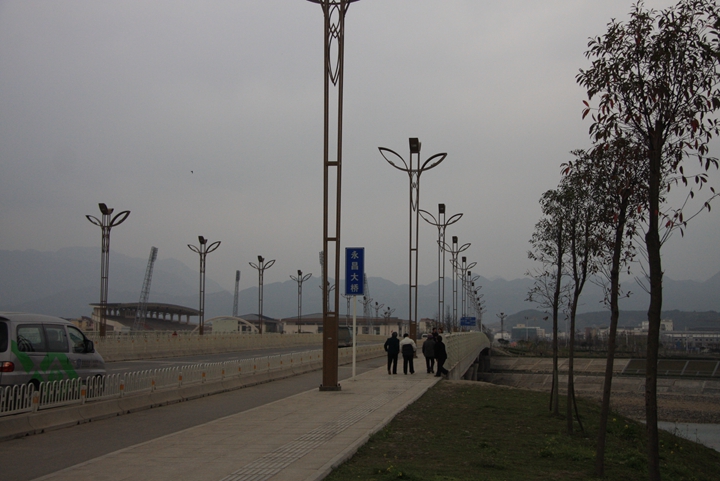 工程規模:永昌橋位于北川新縣城南端,連接齊魯大道和安北公路,是進入新縣城的門戶,也是新縣城對外交通的主要通道,代表著新縣城的形象和未來。永昌橋結構型式采用變截面連續梁方案,橋梁全長550米,其中橋梁主體長230米,寬34米,斜15°。主梁跨徑組合為32.5+3x55+32.5米,箱梁分兩幅,斷面為單箱三室,跨中梁高1.9米,橋墩處梁高3.5米,懸臂2.5米。