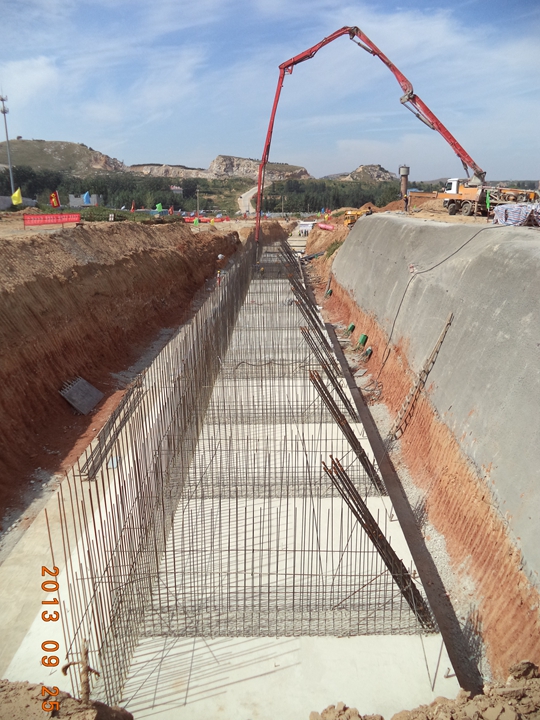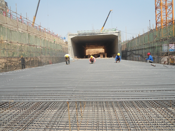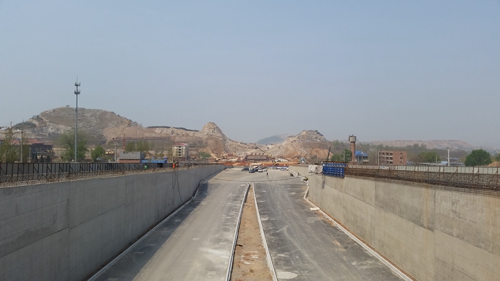 道路工程起于文莊路,地塹部分左線ZK0+725-ZK0+886.65,全長161.65m,右線YK0+725-YK0+887.65,全長162.65m。地上部分北側BK1+375-BK2+025,全長650m,南側NK0+425-NK1+075,全長650m。道路橫斷面為:4米人行道+3.5米非機動車道+3.0米綠化帶+14.75米機動車道+13.75機動車道+13.75機動車道+14.75米機動車道+3.0米綠化帶+3.5米非機動車道+4米人行道。