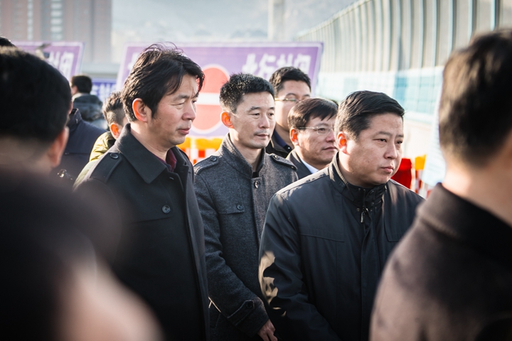 12月6日,二環南路快速路及隧道全線完工通車。省委常委、市委書記王文濤,市委副書記、市長楊魯豫現場察看了通車情況;市委常委、常務副市長孫曉剛和市政府秘書長李華賢參加活動。市市政公用事業局王繼東局長、修春海副局長介紹了工程建設情況,二環南路項目部主任楊峰、集團董事長蔣永才,副總工程師、道橋一所所長鄭明萬,道橋三所所長王曉媚及部分設計、施工、管理人員一同見證了這一激動人心的時刻。